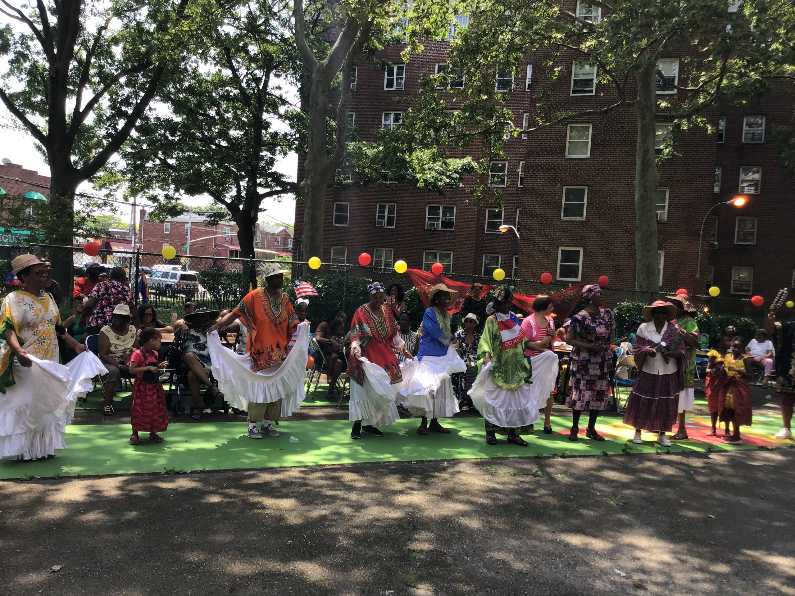 The Catholic Charities Glenwood Senior Center in Brooklyn recently participated in the Canboulay Extravaganza, a pre-celebration for the Trinidad and Tobago Carnival. Festivities included traditional songs and dances. This festival was sponsored by the Brooklyn Arts Council, as part of Su-Casa, a program that places artists in senior centers across New York City.